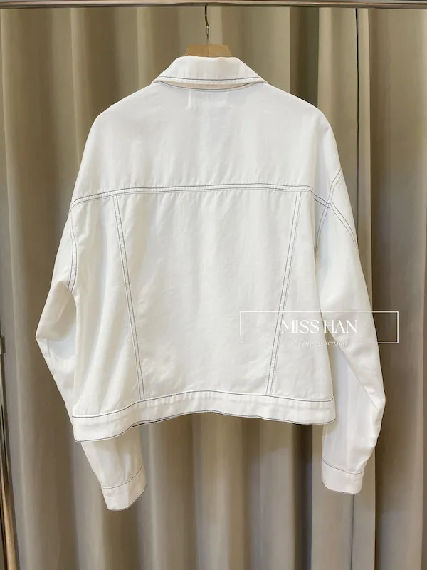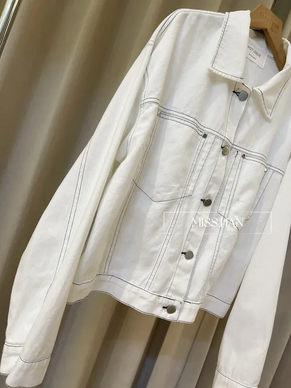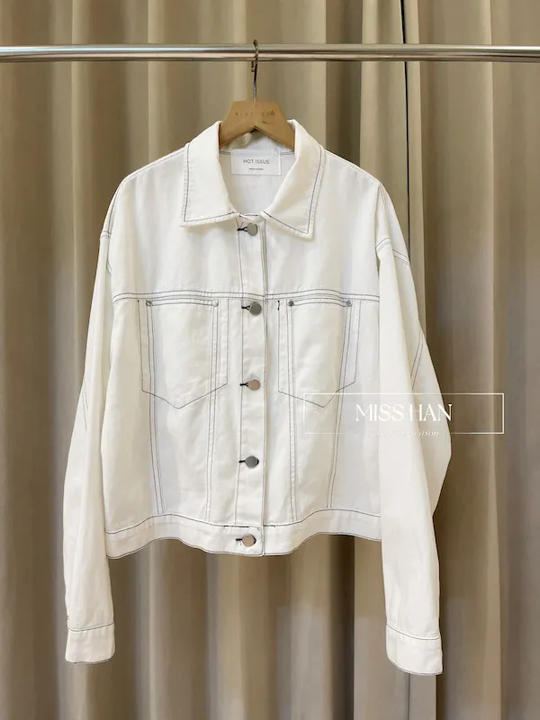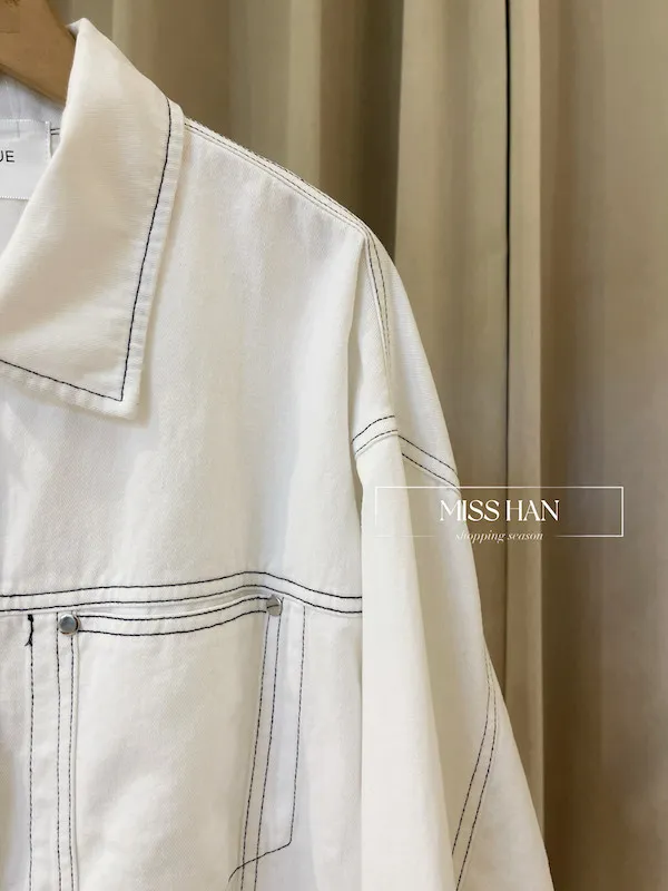 各位時尚達人,MISS HAN 為您誠意推薦本季必備單品:新款撞色繡線薄款牛仔外套