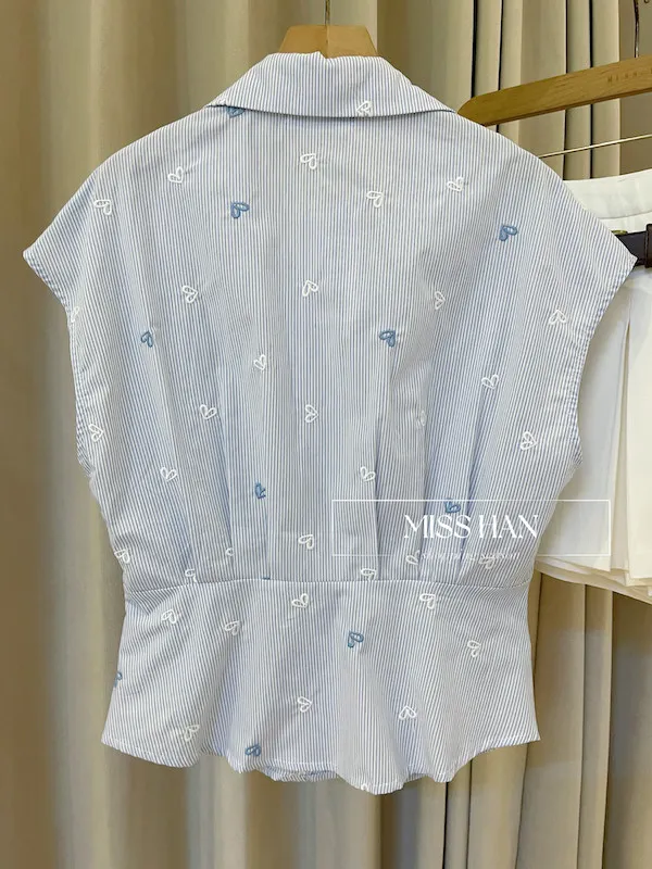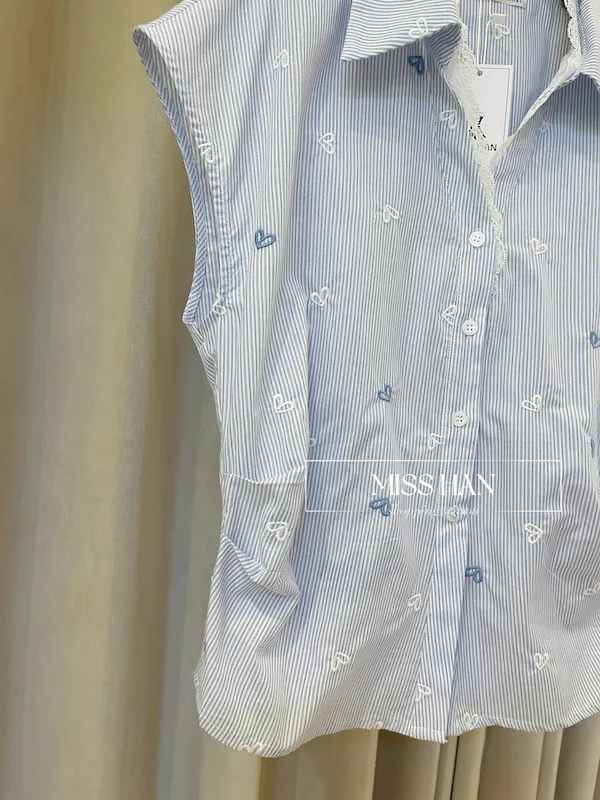 💙 【初夏心動細節・刺繡愛心抓皺襯衫】 💙