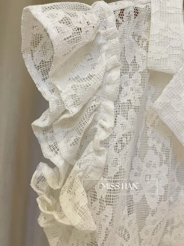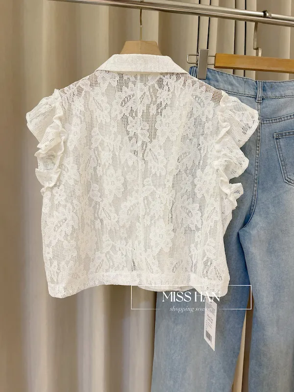整件採用極具通透感的精美鏤空蕾絲編織(看特寫就知道花紋多細膩!)