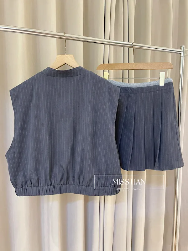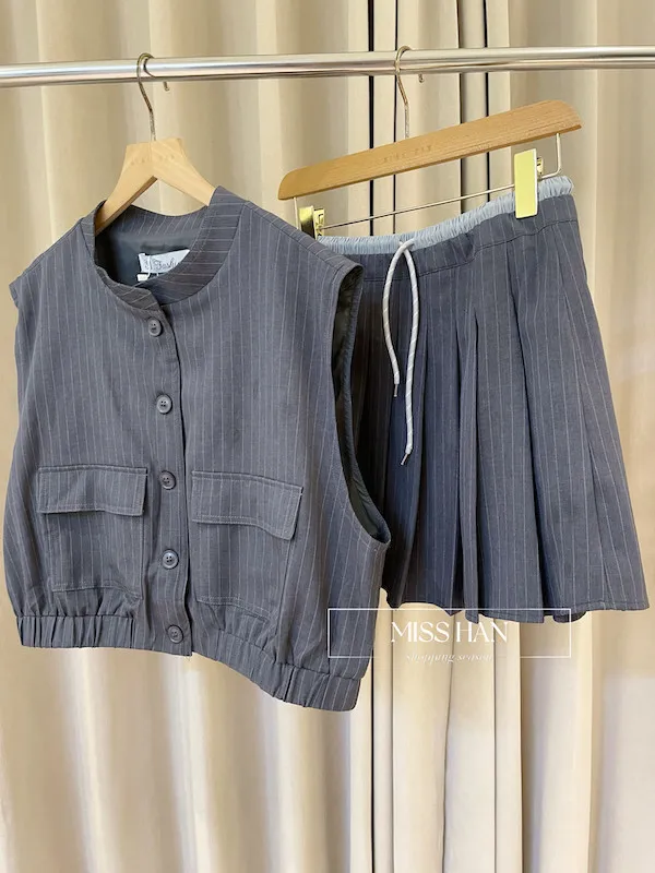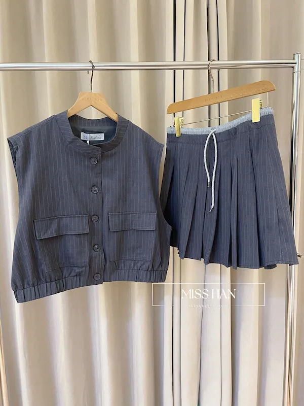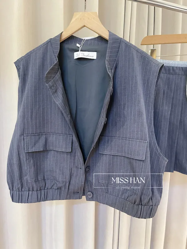 各位寶貝們,小編今天實名安利這套質感爆棚的「直紋西裝立領背心套裝」!