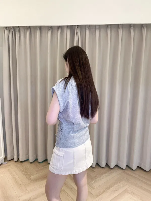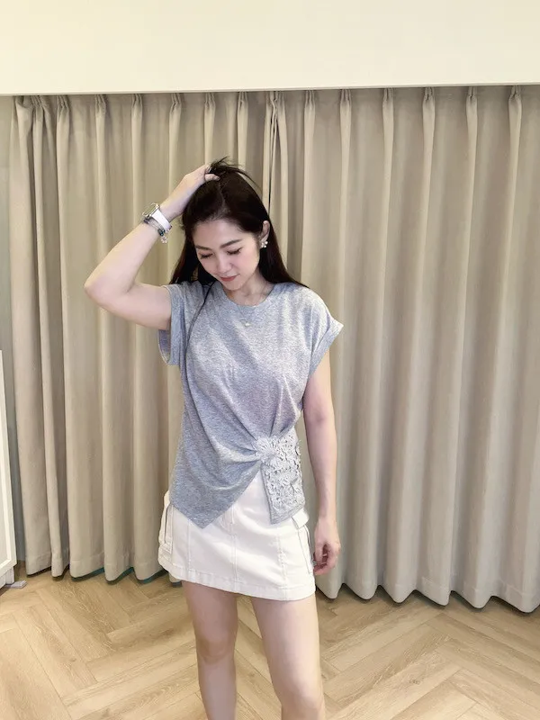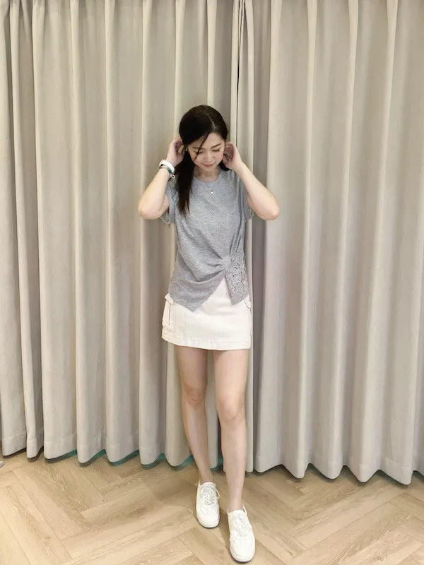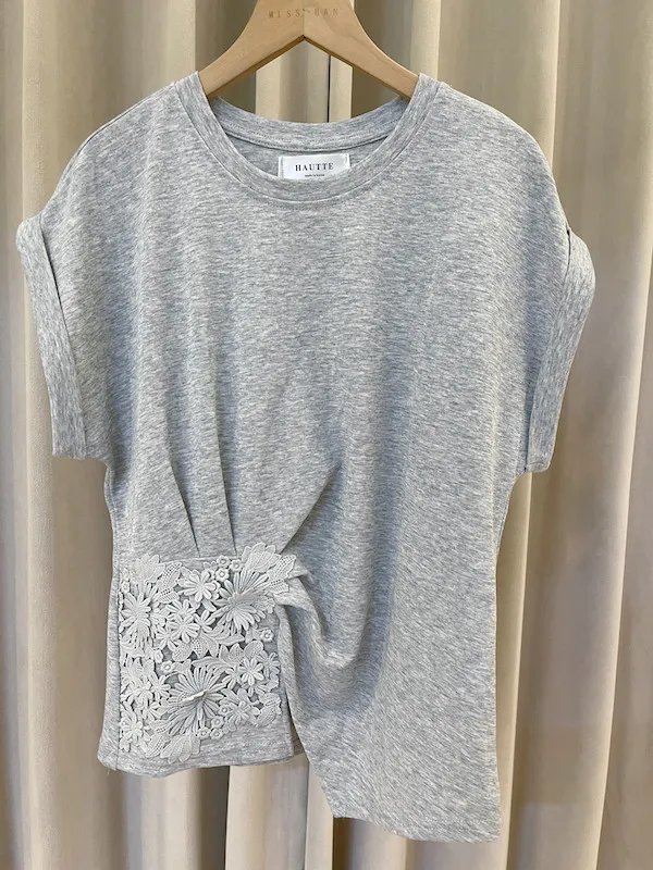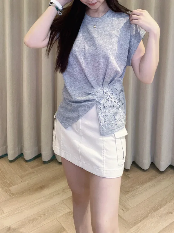 ✨ 質感首選|蕾絲透氣棉 T ✨ 想找涼爽不單調的 T 恤?選它!💖 透氣薄棉面料極致舒適🌿下擺拼精緻布蕾絲,優雅滿分🌸。側邊抓皺設計修飾曲線💃。 F size 彈力好穿。 🎉 🎨 仙氣白 / 質感灰 雙色必入,趕快帶回家吧!