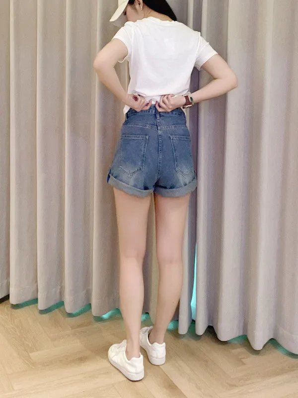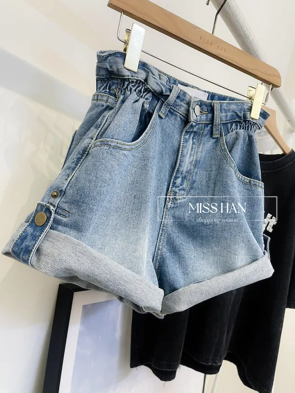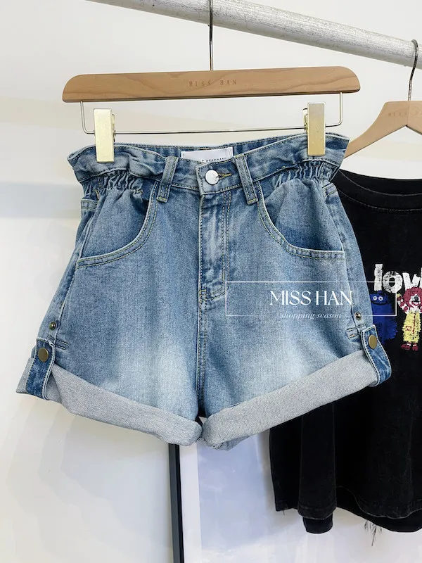 夏日輕裝,一褲雙型!MISS HAN 薄款牛仔捲邊短褲