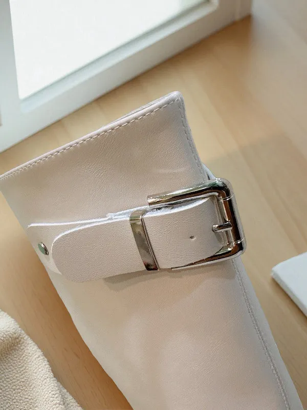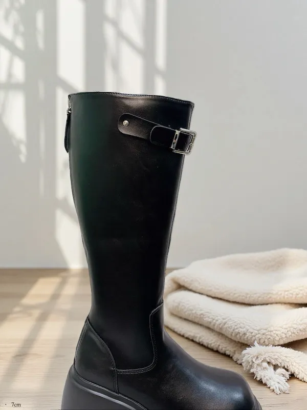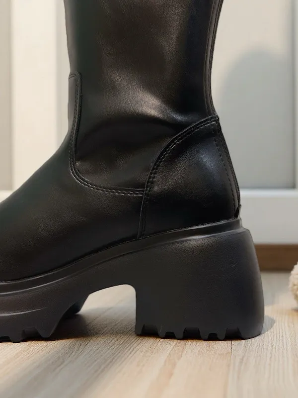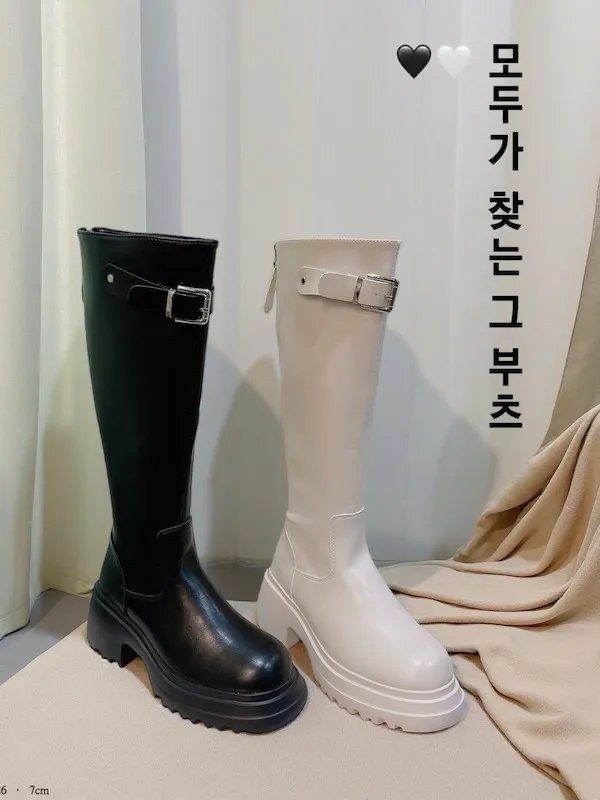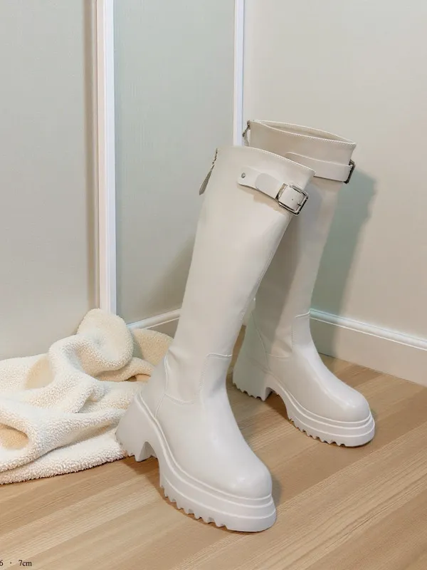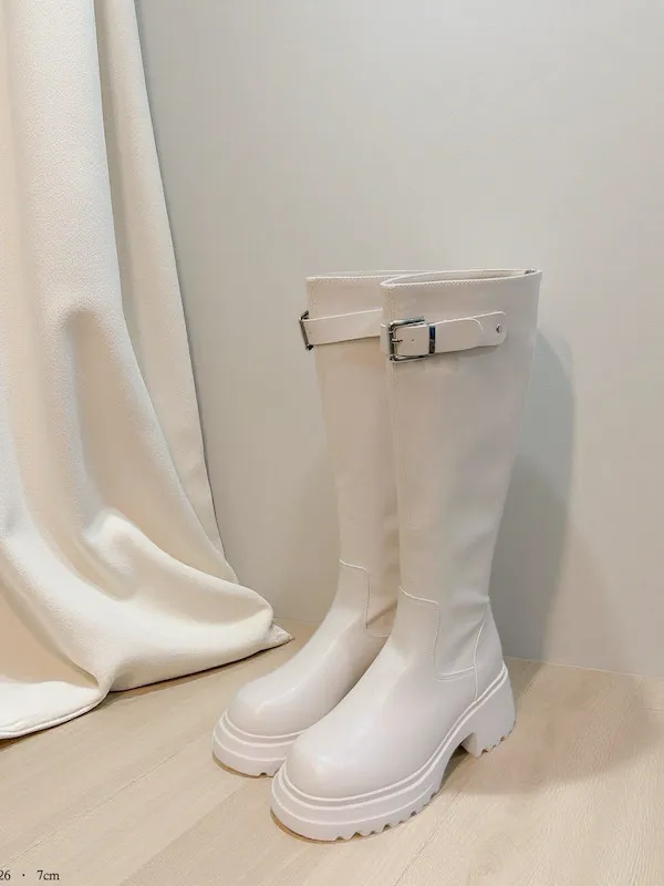 銀釦粗跟厚底靴