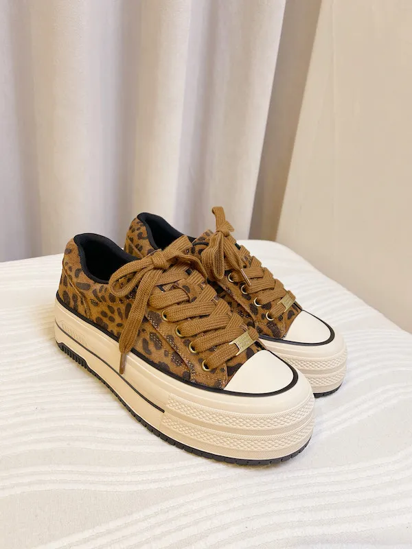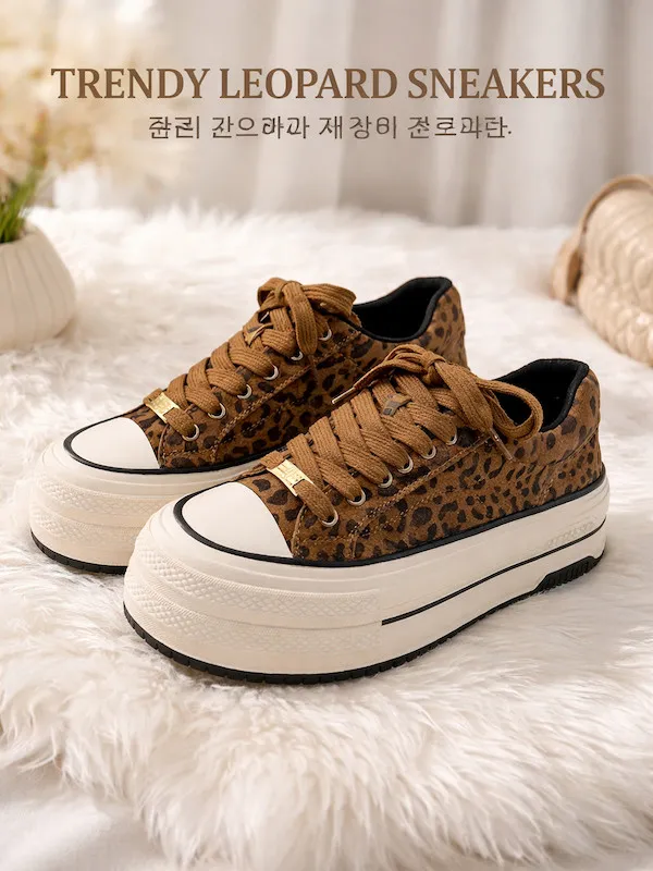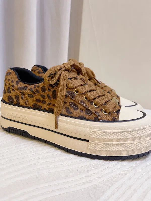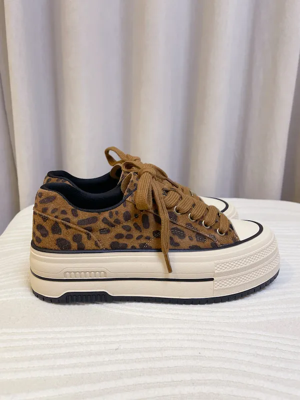 這款韓系秋冬必備的真皮豹紋鬆糕鞋